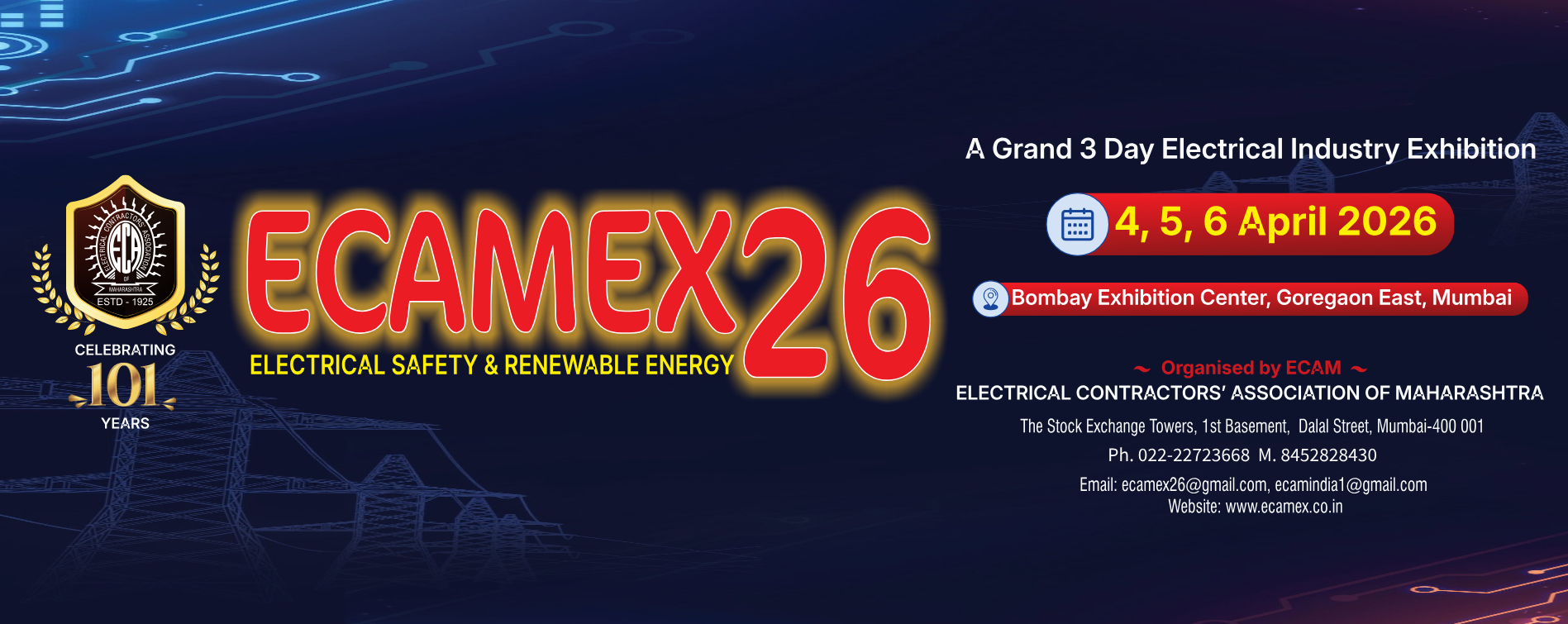 ECAM, Electrical Contractors’ Association of Maharashtra is the national level body of Licensed electrical contractors, electrical traders and associates like electrical manufacturers, engineers, consultants and similar service providers in India and was founded in 1925. ECAM has a PAN Maharashtra presence with its headquarters in Mumbai and regional offices in Pune, Nasik, Tghane, Kokan, Ahmednagar, Dhule, Jalgaon, Western Maharashtra. Ecam has become a pioneer association of the Electrical sector having more than 3000 active members, encompassing the complete value chain in installation, maintenance, repairs and liaisoning of all electrical requirements.Ecam is considered as the VOICE of the electrical contractor fraternity.